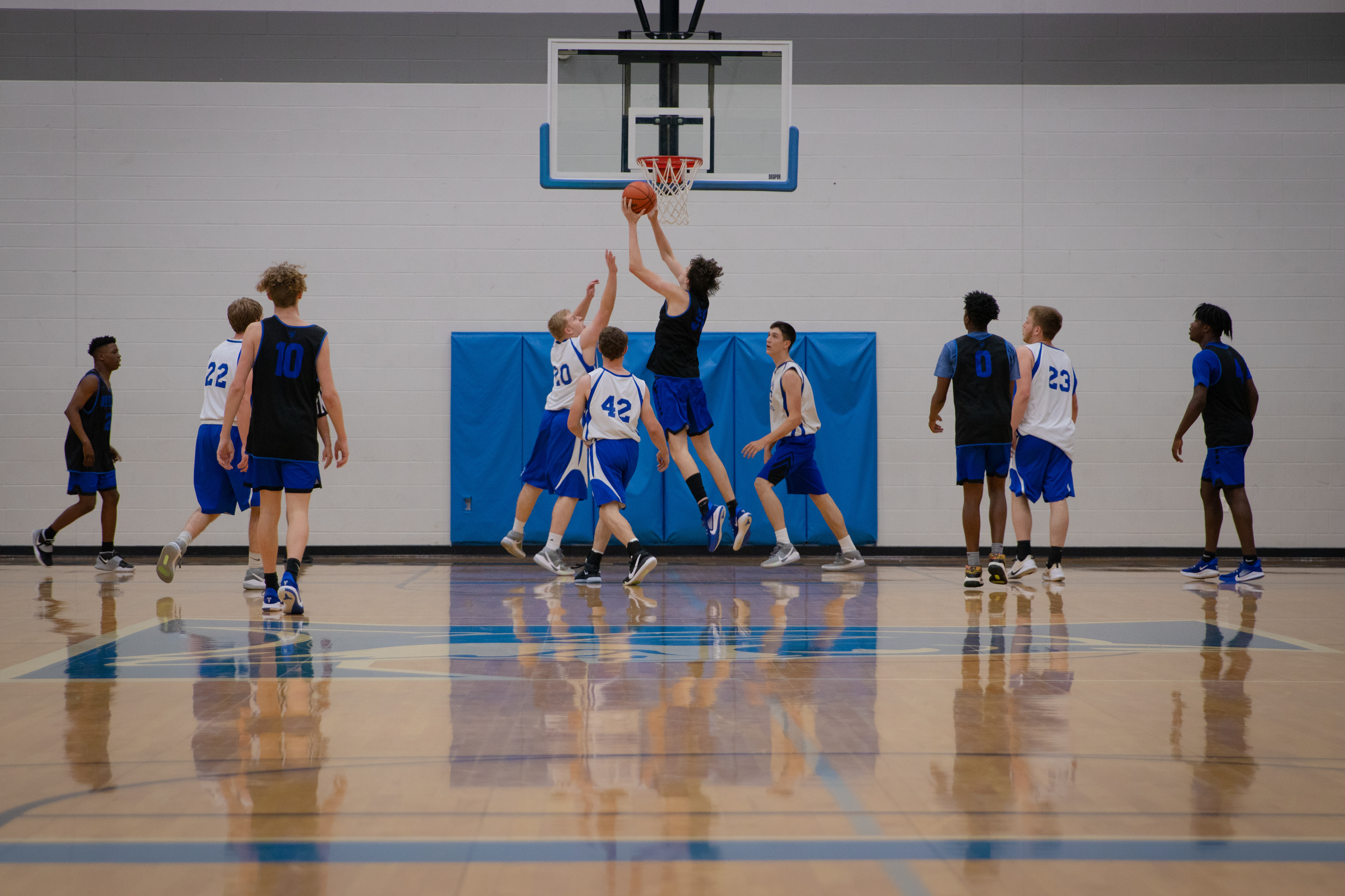 - 20 minute running clock (clock stops on timeouts and last 1:00 of each half)